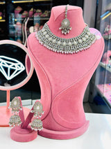 The Aliya Set features handcrafted, high quality reverse American diamond zirconia stones on a rhodium plated base, imported from India. Each piece is expertly crafted to provide a stunning and elegant accessory that is sure to impress. Elevate any outfit with this luxurious and unique set.