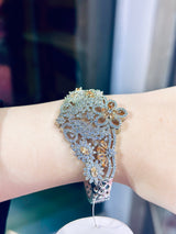 The Amara Designer Handcuff features high-quality American diamond zirconia and champagne stones on a rhodium-plated surface. Imported from Dubai, this unique designer handcuff showcases a stunning and intricate design, making it the perfect accessory for any occasion. Enhance your style with this one-of-a-kind handcuff.