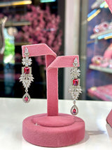The Amelia Set boasts 1 karat American Diamond Zircons and ruby stone , expertly crafted on a white gold plated base imported from India. Elevate your style with this stunning, high-quality piece that exudes elegance and luxury.