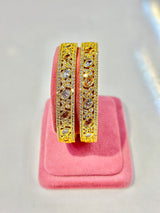 Experience luxury and elegance with Arabella Bangle's. Crafted with high quality American diamond zirconia and polki stones on a gold plated base, these Indian designer bangles are a stunning addition to any outfit. Elevate your style and make a statement with these beautifully crafted accessories.