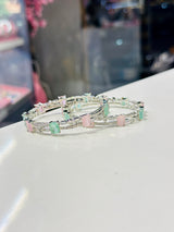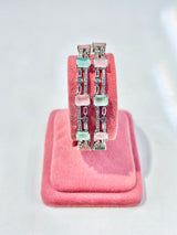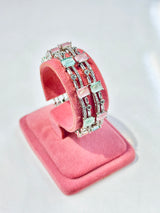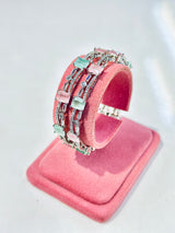 Expertly handcrafted in India, the Samara Bangle in mint pink adds a touch of delicate beauty to any ensemble. Imported from the rich cultural heritage of India, these bangles are the perfect accessory to elevate your style with an elegant touch.