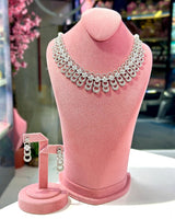 The Zohra Designer Set (grey) is crafted with high-quality micro American diamond zircons and grey stones on a unique white gold-plated base. Imported from Dubai, this set exudes luxury and elegance. Elevate your style with this statement piece.