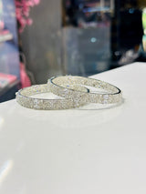 Experience elegance with the Kamila Bangle. Crafted with high quality American diamond zircons on a white gold plated base, this bangle is the perfect addition to your accessory collection. Imported from India, it exudes luxury and charm.