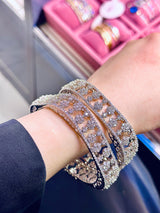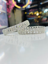 Margot Bangle's are the perfect addition to your jewelry collection. These designer bangles feature high quality American diamond zirconia, showcasing a unique square shape with an Indian influence. Elevate any outfit with these stylish and luxurious bangles.