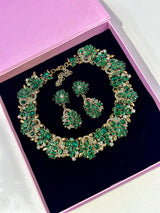 Elevate any party outfit with our Amber Choker Set. The stunning Green rhinestones on an antique gold plated base add a touch of elegance and sophistication. Imported for high quality, this set is perfect for any special occasion.
