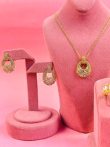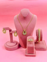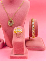 Experience elegance with DEAL 26, featuring a high-quality locket set, bracelet, and adjustable ring, all adorned with premium zircons on a gold-plated base. Imported from Korea, this carefully curated set combines exquisite craftsmanship with versatile style, perfect for enhancing any outfit with a refined touch.