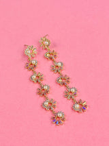 These Tiana earrings feature sparkling American diamond zircons set on a gold-plated base, combining elegance with durability. Imported from Korea, they are designed to be lightweight for comfortable all-day wear. The long, slender design adds sophistication, while the anti-tarnish base ensures lasting shine and quality. Perfect for enhancing any outfit with a refined touch.