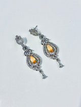 Expertly crafted with high quality American diamond zircons and a stunning peach colored stone on a white gold plated base, our Demi earrings add a touch of elegance and sophistication to any outfit. Handmade in India, these earrings are a perfect balance of timeless design and modern style.