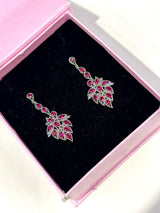 These "Dorothy" earrings feature exquisite ruby stones set on a white gold plated base, adding a touch of elegance to any outfit. With their delicate design and lightweight feel, the earrings are comfortable to wear all day. Imported from Dubai, they bring a touch of luxury to your jewelry collection.