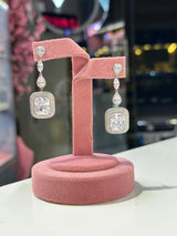 Upgrade your accessory game with our Felicity Earrings. Crafted with high quality AAA+ grade American diamond zircons on a white gold plated base, these earrings are light weight and imported from Dubai. Elevate any outfit with these stunning pieces.