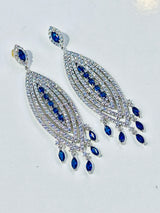 Introducing the Fernanda earrings, adorned with AAA+ grade cubic zirconia and sapphire stones, elegantly placed on white gold plated long earrings. These lightweight, partywear earrings will add a touch of sophistication and glamour to any outfit. Imported from Dubai for the highest quality.