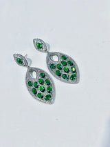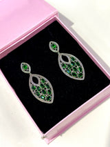 Expertly crafted with high quality American diamond zircons and emerald stones, the katalina earrings on a white gold plated base are lightweight and perfect for partywear. Add a touch of elegance and sophistication to any outfit with these stunning Indian earrings.
