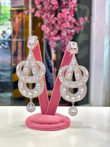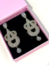 These Melissa earrings showcase a rare and unique design, imported from Dubai. The high quality mirco 1 karat American diamond zircons add a touch of luxury to the white gold plated base. Elevate any outfit with these designer earrings.