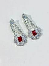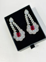 Upgrade your accessory game with Milye Earrings. These elegant earrings feature high quality AAA+ grade cubic zirconia and a stunning dark red stone on a silver plated base. Imported from Dubai, these designer earrings will add a touch of luxury to any outfit.