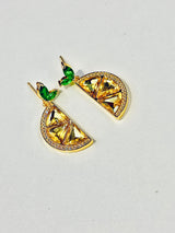 As a product expert, I'm excited to introduce our pineapple earrings. With emerald and champagne stones on a gold plated base, these lightweight earrings feature a trendy Korean design. Enjoy the unique combination of luxury and playfulness with these elegant pineapple-shaped earrings. Limited stock available.