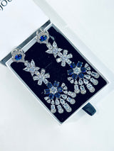 Expertly crafted from high quality American diamond zircons and sapphire stones, these Sanya earrings are a stunning addition to any wardrobe. The silver plated base adds an elegant touch, while the lightweight design makes them perfect for all-day wear. Imported from India, these earrings are the perfect choice for any party look
