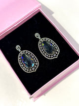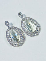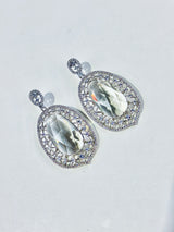These Wiila earrings are crafted with high quality American diamond zircons and doublet stone on a white gold plated base imported from India. Achieve a sophisticated and elegant look with these stunning earrings that will elevate any outfit. Expertly designed for a touch of glamour.