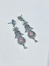Expertly crafted in India, our winter earrings are adorned with high-quality American diamond zircons and a striking pink stone. Each earring is carefully plated in white gold, creating a luxurious and timeless accessory. Elevate your style with these imported, statement earrings.
