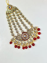 Jisha is a beautifully crafted Indian jhumar adorned with red moti and kundan, expertly designed to add a touch of elegance to any outfit. Made with precision and attention to detail, its intricate design showcases the perfect combination of traditional and modern styles.