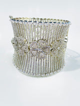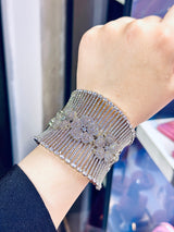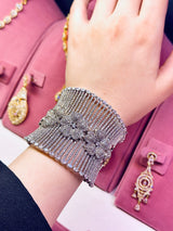 Experience luxury and style with the Kaylee Designer handcuff. Made with high quality micro American diamond zircons on a Rhodium plated base, this unique handcuff is imported from Dubai. Elevate any outfit with this designer piece that exudes sophistication.