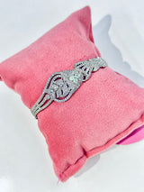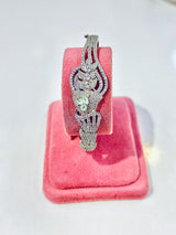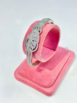 This Magolia Designer Handcuff is crafted with high quality micro American diamond zircons on a rhodium plated base. Imported from Dubai, this designer handcuff exudes elegance and luxury. Make a statement with this unique piece.