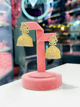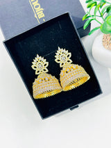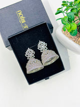 Expertly crafted and imported from India, the Hema Jhumka features high quality American diamond zircons on a rhodium plated base. A stunning addition to any outfit, this jhumka showcases the perfect blend of elegance and traditional style.