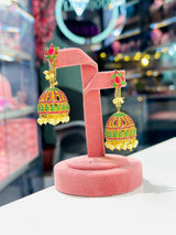 Expertly crafted in India, the Sloane Jhumka features stunning high quality ruby and emerald stones, accented with lustrous pearls. The gold plated base design adds a touch of elegance to this traditional jewelry. Experience the beauty and craftsmanship of India with this imported designer jhumka.