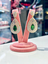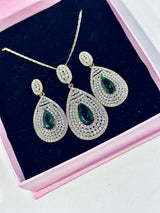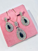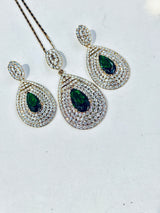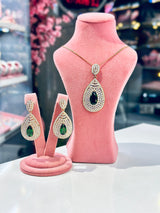 Gold plated zirconia and Emerald stones Locket set for party wear imported from China .