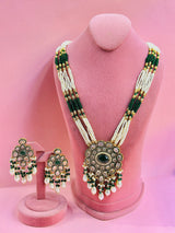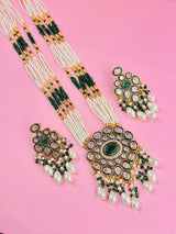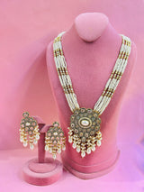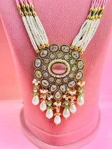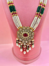 Expertly crafted in India, the Aahana Maala Set features high quality beads and pearls that are both luxurious and lightweight. Imported directly from India, this anti-tarnish set is designed to elevate any outfit with its exquisite design and superior quality.
