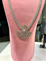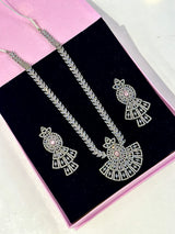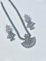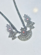 Indulge in luxury with our Eden Malla Set, featuring high quality American diamonds and baby pink stones imported from India. Elevate any outfit with this elegant, statement piece.