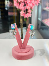 The Anaya Set  features a stunning Sky blue rhinestone necklace set on an antique gold plated base, imported from China. With its unique design and high-quality materials, this set adds a touch of elegance to any outfit. Don't miss out on this imported beauty.