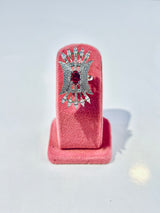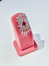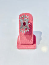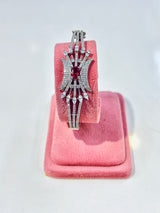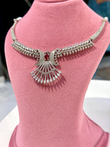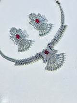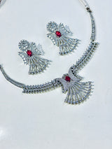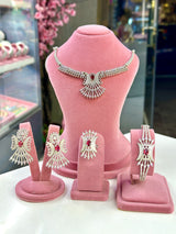 Discover the luxurious elegance of the Axelle Designer Set. Featuring micro American diamond zircon and ruby stones on a white-gold plated base, this imported set includes a necklace, earrings, Adjustable ring, and handcuff. The unique and intricate design is sure to make a statement and add a touch of sophistication to any outfit.