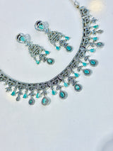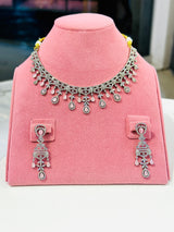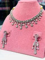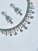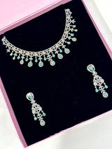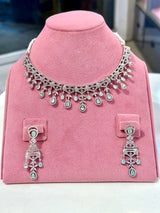 Expertly crafted in India, the Daniela Set features a 1 karat American diamond zircon on a white gold plated base. Available in baby pink and mint color options, this set exudes classic elegance and a touch of luxury. Elevate your style with this imported masterpiece.