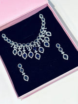 With high quality American diamond zircons and sapphire stones on a white gold plated base, Delaney Set is the epitome of luxury and sophistication. Imported from India, this exquisite piece exudes elegance and charm, making it the perfect accessory for any occasion. Indulge in the beauty and radiance of this stunning piece today.