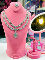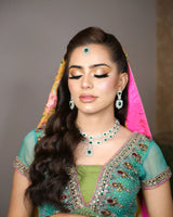 Crafted with expertise from India, the Harper Necklace Set features high quality zirconia and mint stones adorned on a luxurious white gold plated base. Elevate your style with the sparkling brilliance and timeless elegance of this set.