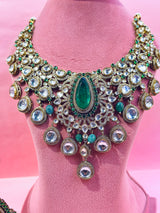 Discover the beauty of this imported necklace set. Showcasing the brilliance of Moissanite Kundan and real doublet stones. A treasure to behold.