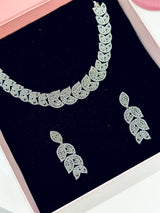 Expertly crafted in Dubai, the Kiara Designer Set boasts a luxurious white gold plated base, adorned with high-quality micro American diamond zircons. Elevate any look with this imported designer set, sure to make a statement with its impeccable craftsmanship and dazzling sparkle.