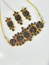 Introducing the Meera Kundan Choker Set, a high quality accessory imported from India. This choker set features intricate kundan work, ensuring an elegant and authentic design. Elevate your style and make a statement with this beautiful and timeless piece.