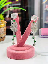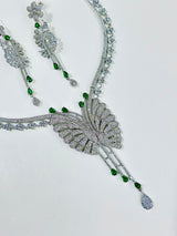 Check out this exquisite necklace set by the designer! It features micro American diamond zircons and stunning emerald stones. Pure elegance .