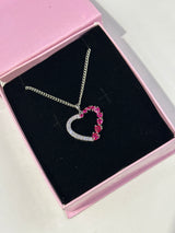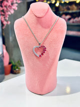 Mackenzie features stunning high quality American diamond zircons and ruby stones on a luxurious silver plated base. The intricately designed pendant is imported directly from Dubai, ensuring a touch of elegance and sophistication to any outfit. Elevate your style with Mackenzie's exquisite craftsmanship and imported materials.