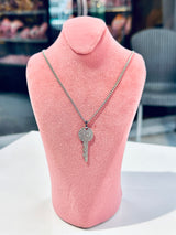 Reageb offers a high quality American diamond zirconia key pendant, imported from Dubai for a touch of luxury. Made with exquisite attention to detail, this pendant exudes elegance and is sure to make a statement. Elevate any outfit with this timeless piece.