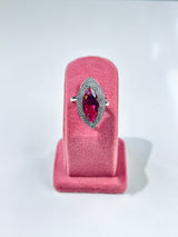 Expertly crafted with high-quality American diamond zirconia stones, the Frankie Ring is a stunning piece of jewelry imported from Dubai. Showcasing a rhodium plated base adorned with red stones, this adjustable designer ring exudes luxury and elegance. Elevate your style with this exquisite accessory.