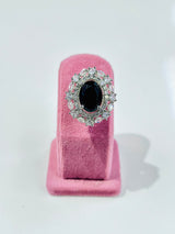 This exquisite Luxe Ring features a stunning 1 karat AD zirconia with a bold black stone, imported from India. The adjustable design allows for the perfect fit. Elevate any outfit with this luxurious and unique piece. Hand-crafted by experts, this ring is sure to become a statement piece in your collection .
