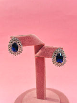 These Joy Studs feature exquisite American diamond zircons and sapphire stones set on a white gold-plated base. Imported for superior quality, they offer a brilliant sparkle while the anti-tarnish finish ensures lasting shine. Hypoallergenic materials make them ideal for sensitive skin, combining elegance with comfort for everyday wear or special occasions.