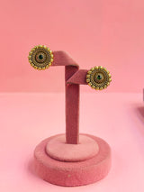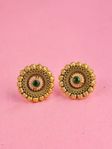 Elevate your jewelry collection with our exquisite Medha Rajwari Studs. These high quality studs, crafted from brass and semi precious emerald stone from India, are a timeless addition to any outfit. With a lifetime of vibrant color, these studs are a must-have for any fashion-forward individual