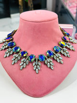 The Anaya Set  features a stunning purple rhinestone necklace set on an antique gold plated base, imported from China. With its unique design and high-quality materials, this set adds a touch of elegance to any outfit. Don't miss out on this imported beauty.