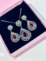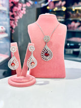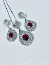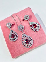"Add a touch of elegance to someone's life with this beautiful locket set. The combination of zirconia and Ruby stones makes it a truly special gift. Show them how much you care with this timeless piece!"