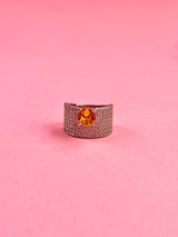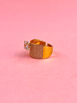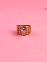 The Coralie Ring features high-quality micro American diamonds, zirconia, and semi-precious stones in a variety of colors, all set on a white gold-plated base. Imported from Korea, this adjustable ring ensures a perfect fit without size concerns, combining expert craftsmanship with elegant design for a refined accessory.