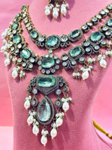 Introducing a one-of-a-kind masterpiece: a Malla set crafted with high-quality Moissanite Kundan and real doublet stones, imported from India.
