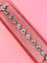The Elosie bracelet features a stunning arrangement of American diamond zircons and vibrant multi-colour stones set on a white gold plated base. This imported piece combines expert craftsmanship with elegant design, offering a sophisticated accessory that enhances any outfit with its sparkling brilliance and refined finish. Ideal for those seeking a luxurious yet versatile bracelet.